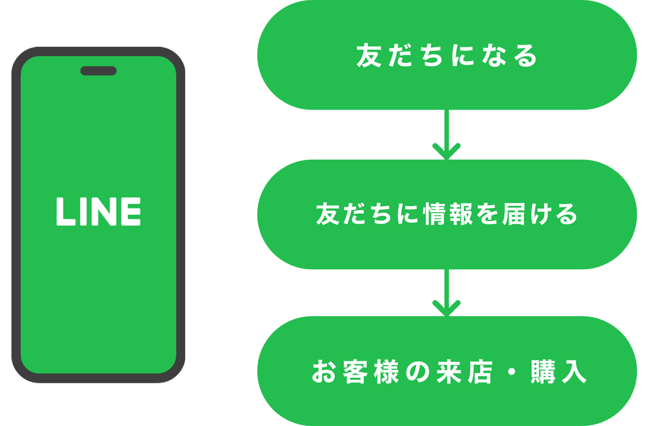 自社・自店舗のLINE公式アカウントを登録してくれたユーザーのことを「友だち」と呼びます。企業や店舗はLINE公式アカウントを通じて、「友だち」という形で繋がることで任意のタイミングで情報を届けることができるので、販売促進や集客など様々な用途のビジネスシーンで活用可能です。