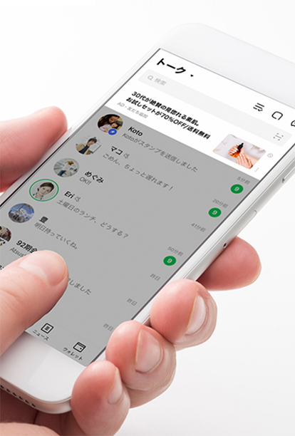 現在LINEは、日本人口の約7割をカバーしており、シニア層・若年層問わず各年代にご利用いただいております。