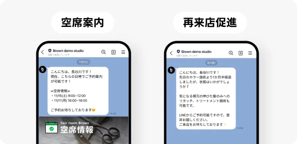 - 来店から数日後に、フォローメッセージを送って再来店を促せる