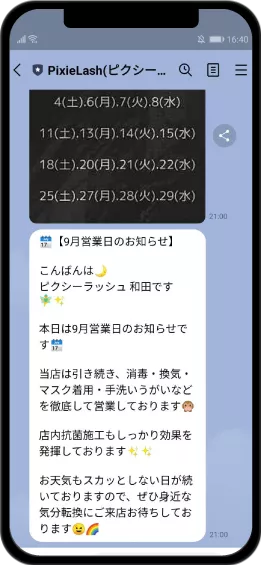 - 月に最低1度は一斉配信で当該月の営業時間に関する案内を配信