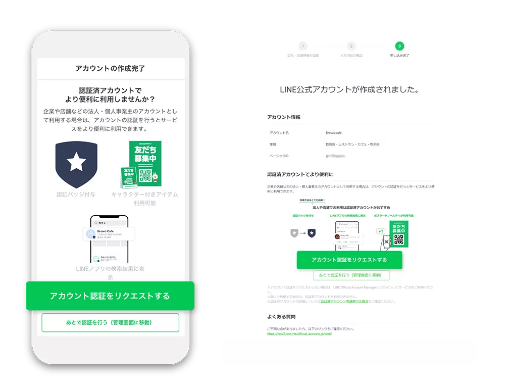 「認証済アカウント」の申請中も未認証アカウントとしてLINE公式アカウントをご利用いただけます。