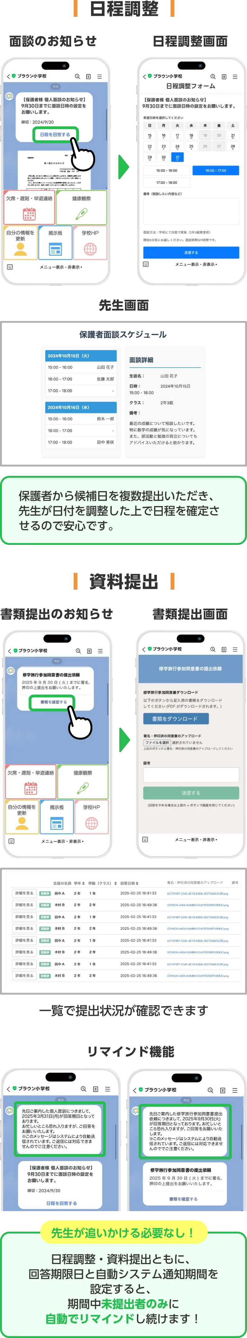 教育現場と保護者とのコミュニケーションの業務効率化を実現します。
