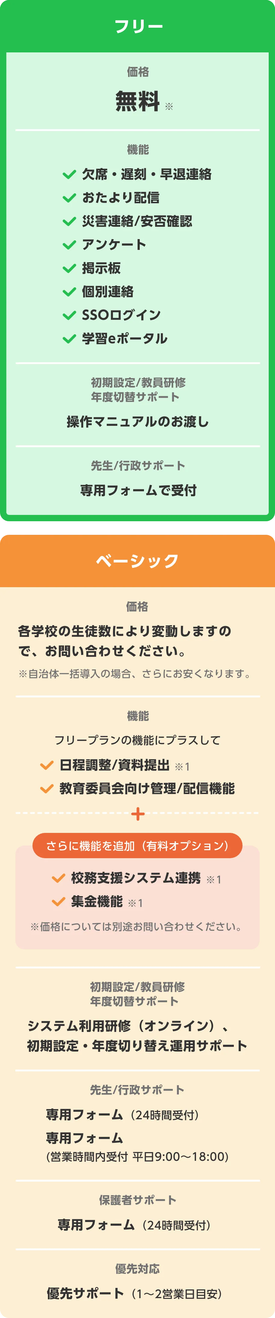 ※無料プランは、国公立の保育園/幼稚園/小学校/中学校/高等学校/特別支援学校及び準ずる学校等教育機関での利用が対象になります。