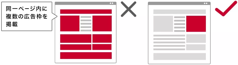 同一ページ内に複数の広告枠が掲載されること(アドクラッター)により、ユーザーにネガティブな印象を与え、広告効果が低下する恐れがあるとして、海外ではそのような広告の配置を避ける動きがあります。