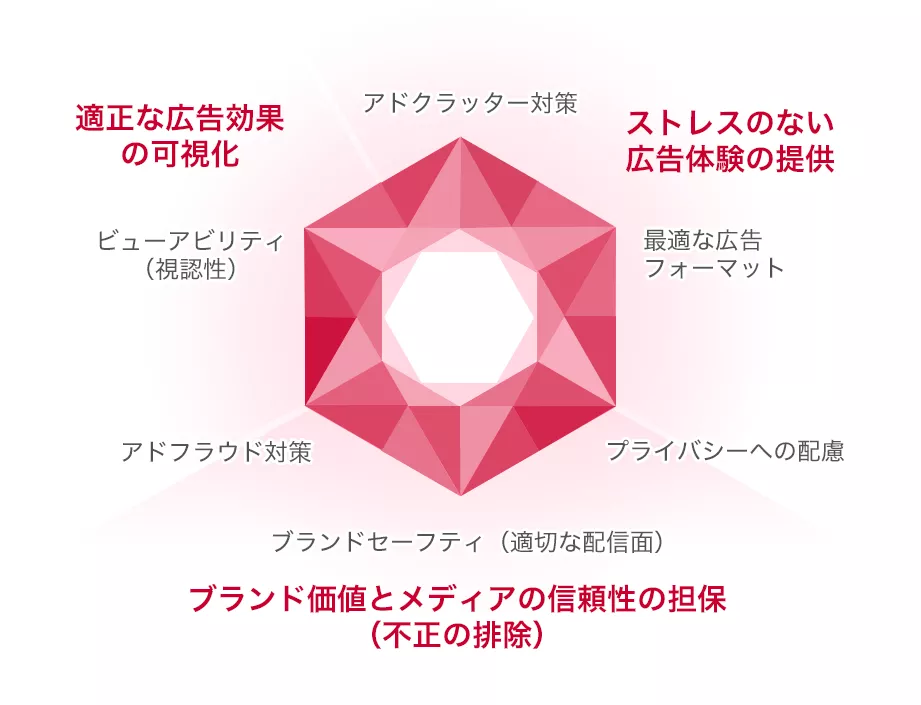 “広告品質における3つの価値と6つの対策項目(広告品質のダイヤモンド)”を定義しています。