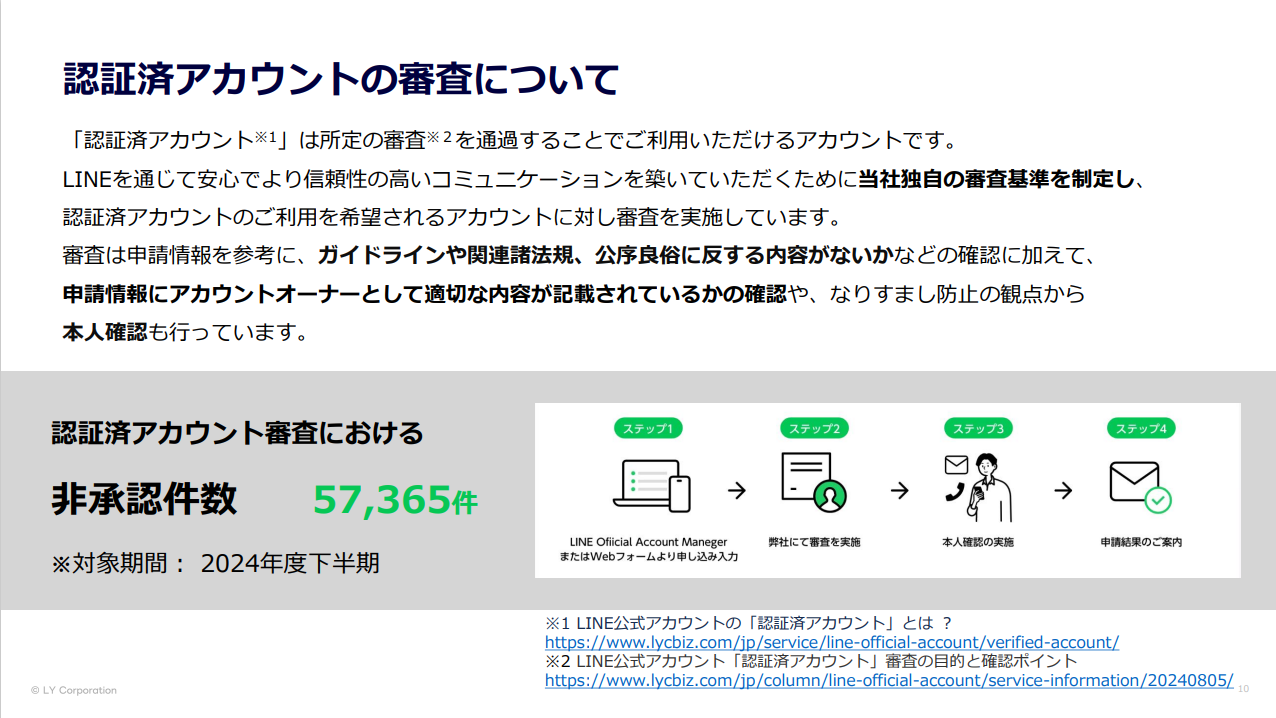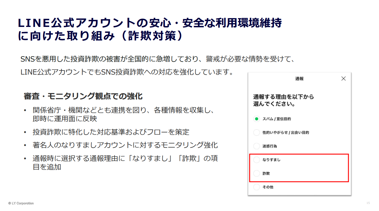 アカウントオーナー、提携パートナーそしてユーザーの皆様に安心して弊社のサービスをご利用いただけるよう、LINE公式アカウントのモニタリングおよび認証済アカウント審査の⽇本国内における取り組み内容をお伝えします。
