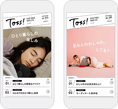 メイクやファッショトレンド&カルチャー、映画、アートなどのエンタメから、ファッションに⾷やお出かけまで、「Toss!」ならではの視点でシティガールの気持ちに本当にフィットするライフスタイルを提案。